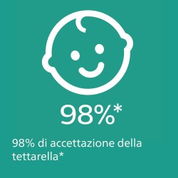 98 di accettazione delle tettarelle quando abbiamo chiesto alle mamme come reagiscono i bambini alle nostre morbide tettarelle in silicone il 98 ha confermato che i bimbi accettano i ciucci Philips Avent ultra air