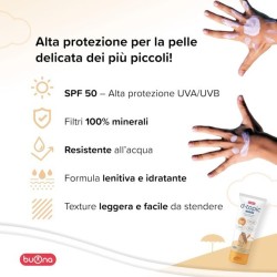 CREMA SOLARE Protezione solare SPF 50 con filtri 100 minerali per la pelle delicata e sensibile dei bambini