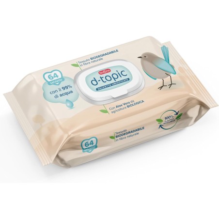 DETERSIONE DELICATA E NATURALE d topic Salviette sono ideali per detergere delicatamente la pelle di neonati bambini e adulti Composte al 99 da acqua e arricchite con Aloe Vera biologica offrono un azione lenitiva e idratante in ogni occasione