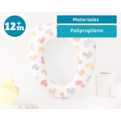 Riduttore sicuro e confortevole con maniglie ergonomiche che forniscono stabilità e un imbottitura morbida che offre comfort rendendo il processo di transizione al WC più facile e piacevole
