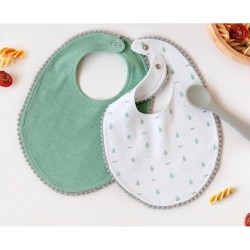 SET DUE BAVAGLINI IN COTONE SALVIA CON CUCCHIAINO