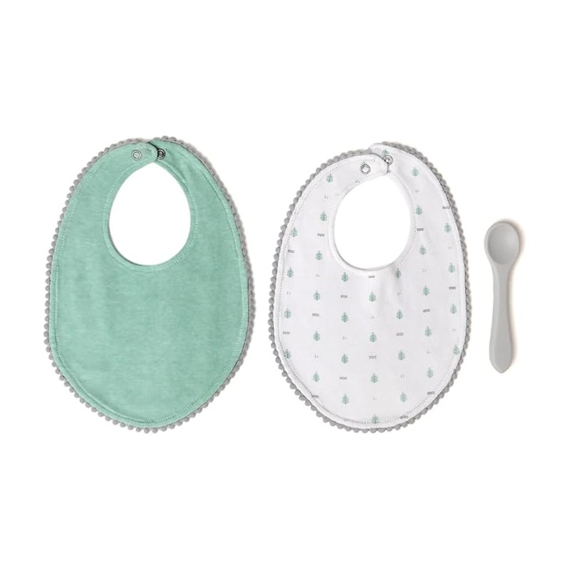 I bavaglini sono un must per ogni famiglia con neonati Questo set è composto da due bavaglini in 100 cotone e un cucchiaio in 100 silicone alimentare di alta qualità completamente sicuro e atossi