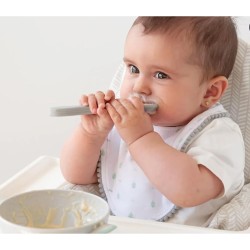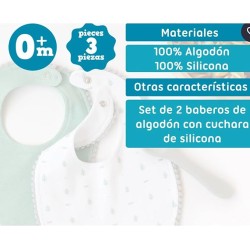 I bavaglini sono un must per ogni famiglia con neonati Questo set è composto da due bavaglini in 100 cotone e un cucchiaio in 100 silicone alimentare di alta qualità completamente sicuro e atossico ideale per l alimentazione dei neonati in tutta sicurezza Questo materiale è resistente al calore facile da pulire e può essere sterilizzato per una maggiore igiene Bavaglini Consigliati dai 4 mesi in su Materiale silicone Lavare a mano Non candeggiare Non stirare Non asciugare in asciugatrice Non lavare a secco Cucchiaio Materiale 100 silicone di alta qualità Lavabile in lavastoviglie Non adatto al microonde Non utilizzare prodotti abrasivi o solventi Non esporre direttamente alla luce solare Dimensioni 11 cm