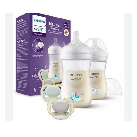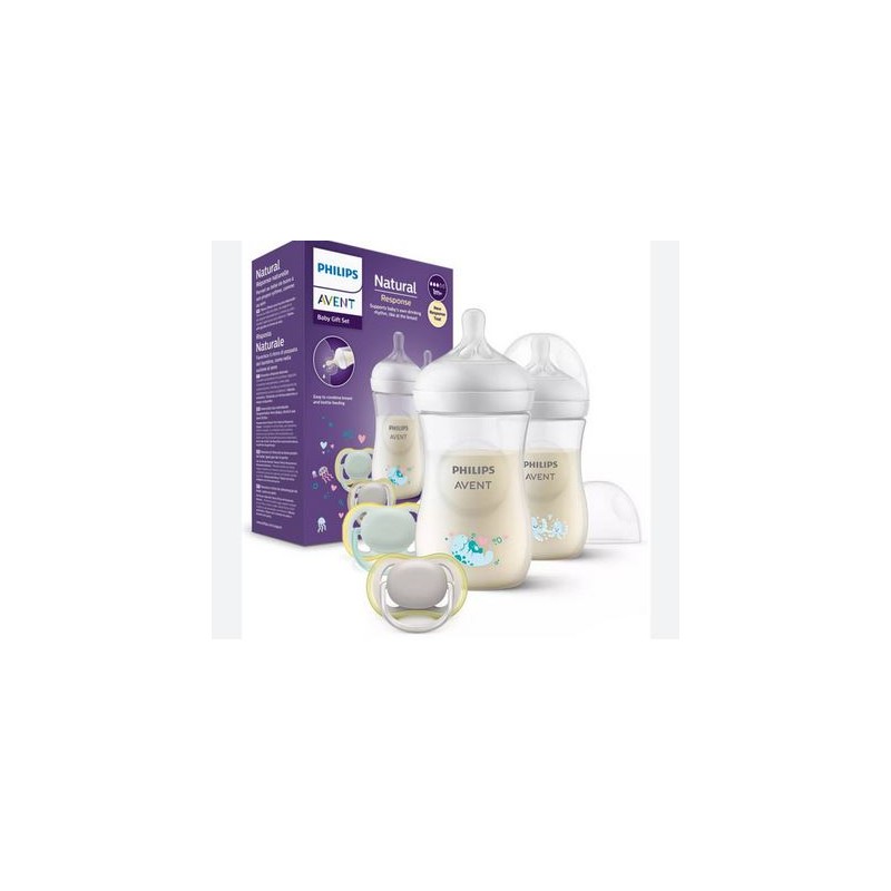 Il set regalo ideale per allattare e calmare il tuo bimbo con un tocco di colore Con le tettarelle Natural Response il bambino può bere deglutire e respirare utilizzando il ritmo naturale come sul seno facilitando la combinazione tra allattamento al seno e al biberon