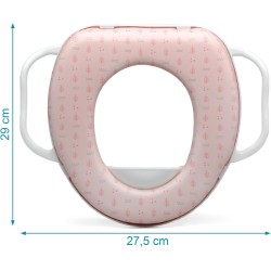 Riduttore sicuro e confortevole con maniglie ergonomiche che forniscono stabilità e un imbottitura morbida che offre comfort rendendo il processo di transizione al WC più facile e piacevole