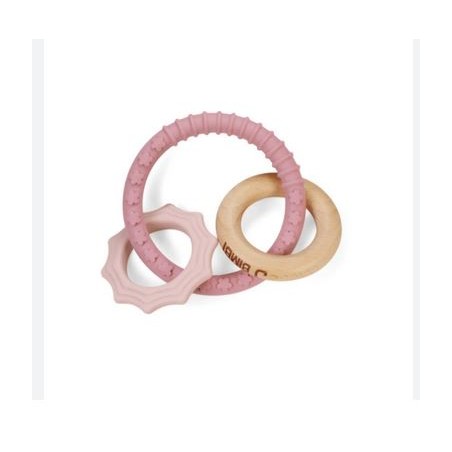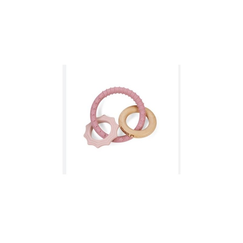 J Bimbi Bite Play Charms Massaggiagengive è composto da 3 elementi in legno e silicone per alleviare i fastidi della dentizione stimolando lo sviluppo motorio