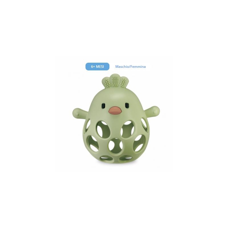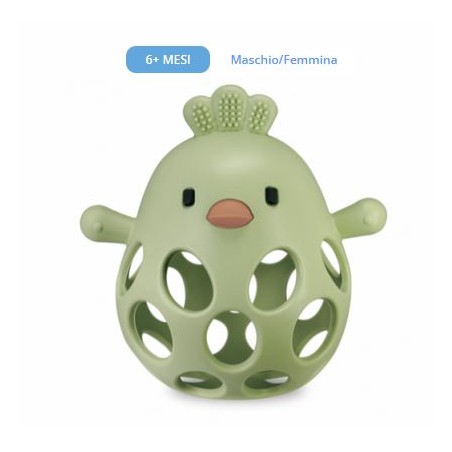 Massaggiagengive in silicone Bite Play Chicken Pistacchio BITE PLAY MIRTILLO J BIMBI è la simpatica gallina 100 in silicone dall inconfondibile design forato facile da impugnare e schiacciare La sua cresta tutta da mordere è composta da morbide setole che aiutano a tenere puliti i primi dentini e il suo corpo cavo può trasformarsi in un contenitore al suo interno è possibile infatti inserire oggetti per stimolare la coordinazione con il gioco metti togli