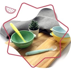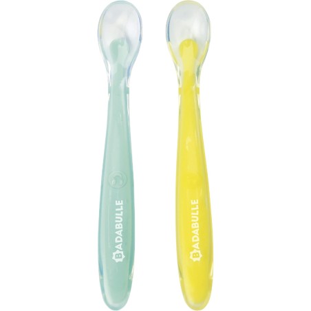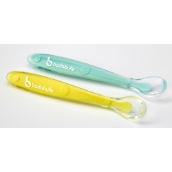 Questo set di 2 cucchiaini in silicone accompagnano il bambino fin dalle prime pappe