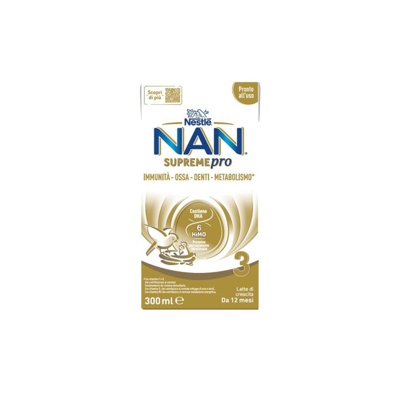 ATTENZIONE L IMMAGINE VISUALIZZATA SUL SITO HA SOLO SCOPO ILLUSTRATIVO Nestlè NAN Supreme Pro 1 è un latte liquido indicato per l alimentazione del lattante che non può essere allattato al seno Unicamente lattosio e senza olio di palma contiene DHA come prescritto dalla legge per tutti le formule per lattanti in vendita online su www farmaciaigea com Gli esperti di Nestlè hanno sviluppato Nan Supremepro 1 guidati dalle più recenti raccomandazioni nutrizionali e dalle ultime ricerche sul latte materno