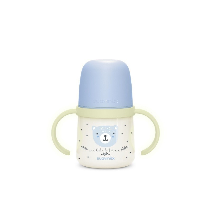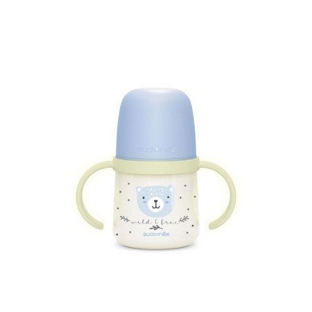 Il biberon Suavinex Wild Free da 150 ml con manici è appositamente progettato per supportare il bambino nel passaggio dal biberon alla tazza Dotato di un beccuccio in silicone granuloso ultra morbi