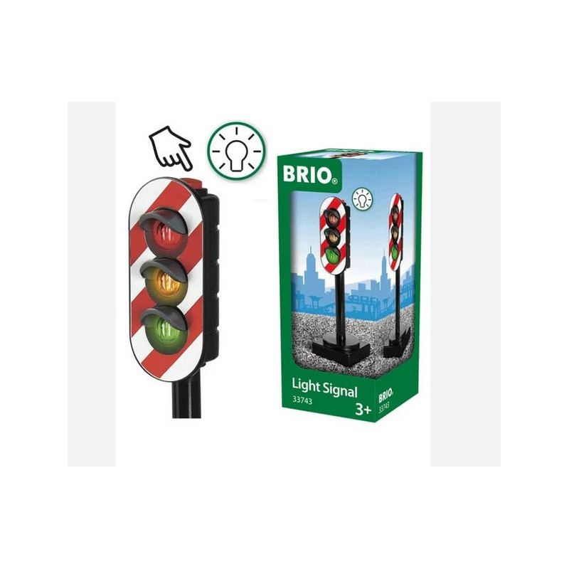 Premi il tasto in cima al semaforo per attivare le luci verde gialla e rossa Un indispensabile accessorio per tutti i mondi BRIO dedicati alla strada e alla ferrovia Per bambini a partire da 3 anni