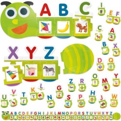 Un gioco davvero divertente per riconoscere le lettere dell alfabeto Grazie al meccanismo auto correttivo i bambini associano la lettera sagomata al soggetto corrispondente Tutte le tessere insieme alla coda e alla testa formano un simpaticissimo bruco lungo più di un metro