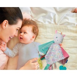 SOFT CUDDLES UNICORN un tenero dou dou con le sembianze di un unicorno progettato per accompagnare i neonati nei primi mesi di vita offrendo una sensazione di sicurezza e dolcezza durante i momenti
