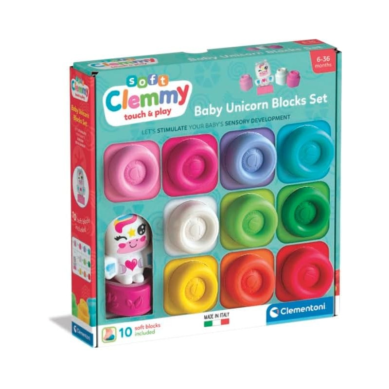 COSA CONTIENE gioco Made in Italy per bambine e bambini dai 6 ai 36 mesi include 10 mattoncini realizzati con materiale morbido lavabili e atossici e 1 personaggio unicorno fantasy