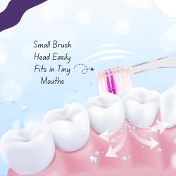 Setole morbide e arrotondate delicate sulle gengive sensibili dei bambini prevenendo le irritazioni e fornendo una pulizia accurata