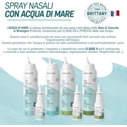 CON ACQUA DI MARE Spray nasale con acqua di mare estratta da una zona controllata della baia di Cancale in Bretagna Francia nota per la qualità e la purezza delle sue acque Zona classificata come classe A soggetta a sorveglianza e controlli continui