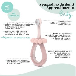 SPAZZOLINO DA DENTI PER L APPRENDIMENTO BABY Spazzolino da denti per bambini da 0 a 2 anni Pulisce e massaggia delicatamente i denti e le gengive fin dal primo dente Setole extra morbide ideali per i primi denti Manico con facile presa testurizzato e con anello di sicurezza che impedisce al pennello di essere introdotto in eccesso Setole centrali colorate come guida per il dosaggio raccomandato del dentifricio