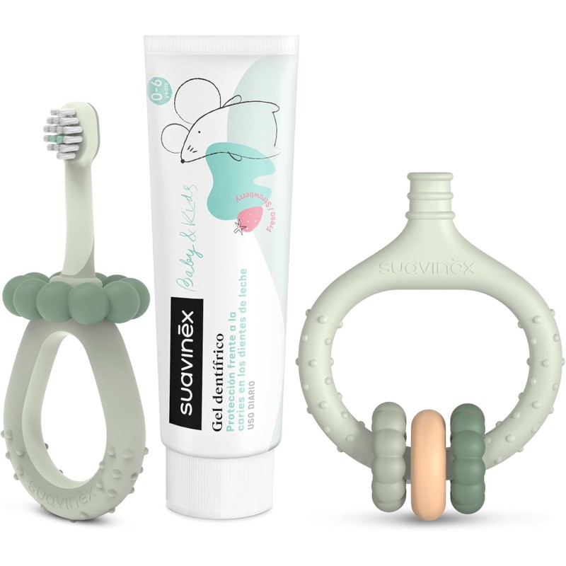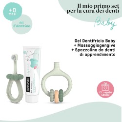 SET INIZIALE PER LA CURA DEI DENTI Set con tutti gli elementi essenziali per la cura orale dei più piccoli Per bambini da 0 a 2 anni Per uso quotidiano in una bella scatola perfetta da regalare Il set comprende dentifricio per bambini spazzolino da denti per bambini massaggiatore per gengive