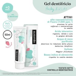 GEL DENTIFRICIO BABY KIDS Dentifricio per neonati e bambini Questo dentifricio è stato sviluppato appositamente per la protezione anti carie dei denti da latte La sua formula fornisce tutti gli elementi necessari per una completa igiene orale fin dai primi denti Uso quotidiano Basso indice di abrasività e concentrazione ottimale di fluoro di 1 000 ppm 94 ingredienti di origine naturale