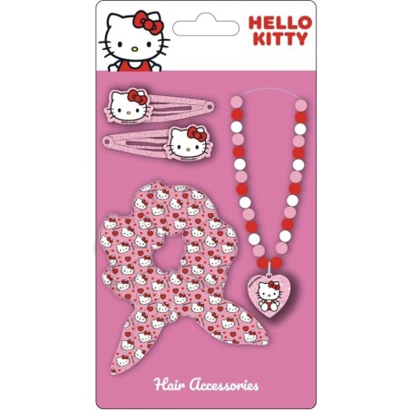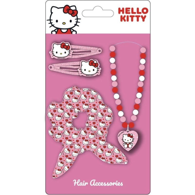 Set di accessori Hello Kitty con stile tenero e funzionale include 2 mollette metalliche uno scrunchie morbido e una collana di perline decorata con ciondolo a forma di cuore perfetta per le ragazz