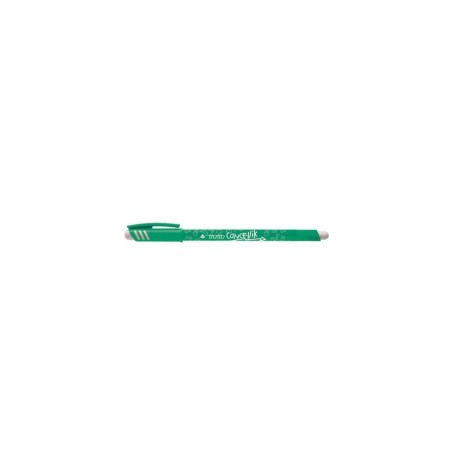 Penna a sfera con inchiostro cancellabile verde con doppia gomma incorporata molto resistente Dotata di cappuccio traslucido anti soffocamento e di spazio per la personalizzazione L inchiostro dell