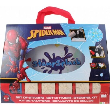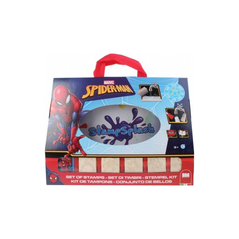 VALIGETTA CON 7 PENNARELLI E 7 TIMBRINI IN LEGNO SPIDERMAN