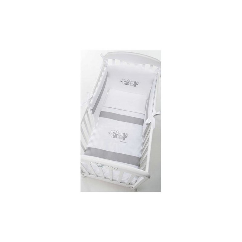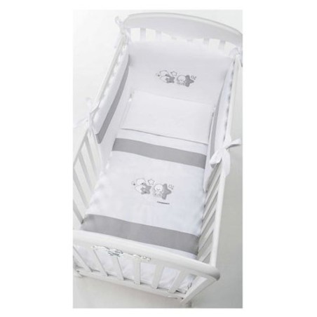 Il completo piumone Piccoli Amici di Foppapedretti è caratterizzato da ricami con due piccoli amici un dolcissimo coniglietto e un simpatico orsetto che giocano con alcune stelline nelle tinte del grigio Il set tessile è composto da paracolpi sacco sfoderabile imbottitura e federa per cuscino