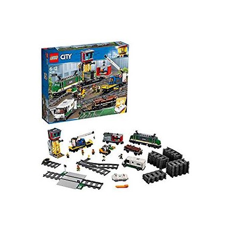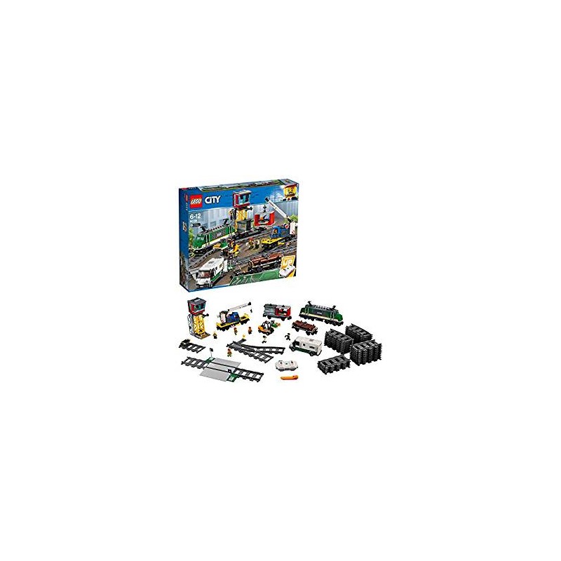 Prepara il Treno merci LEGO City 60198 per trasportare il grande carico Utilizza il carrello elevatore per riempire i container e quindi caricali sul vagone con la gru Aggancia tutti i vagoni dietro il locomotore sali in cabina aziona il fischio e parti Consegna il carico in tempo e aiuta a LEGO City a funzionare senza intoppi