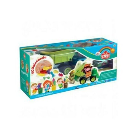 i vari elementi verranno poi differenziati nei bidoncini di plastica colorati che verranno in seguito trasportati con un vero Camioncino a ribalta in plastica