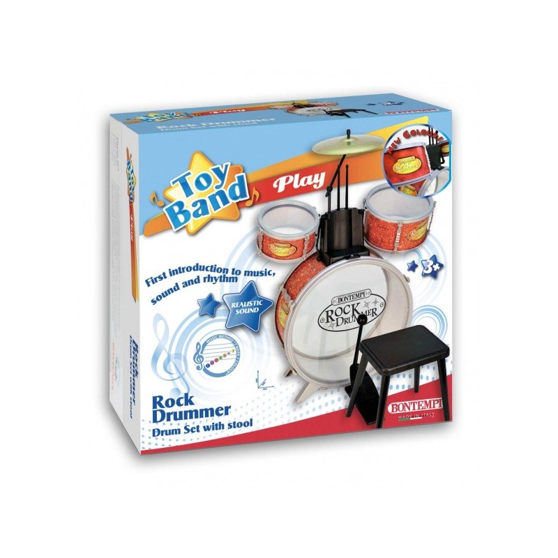 BATTERIA ROCK DRUMMER ROSSA CON PEDALE 2 TAMBURI