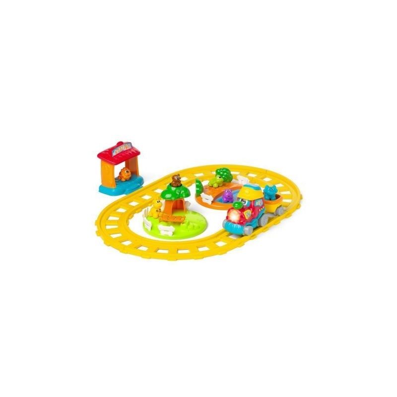 Il trenino delle avventure è sia un ricco playset che un gioco bilingue educativo Il treno motorizzato si muove sulle rotaie con suoni e musiche realistiche e insegna curiosità sui 6 animali La conf