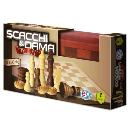Pezzi in legno raffinati per giocare a dama e scacchi