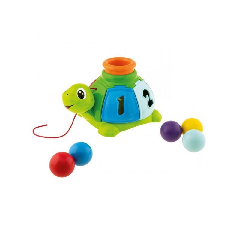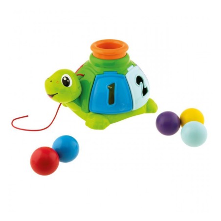 Gioco elettronico 2 in 1 a forma di simpatica tartaruga E' un contenitore di palline con effetto sorpresa ed anche un gioco trainabile musicale Dopo aver inserito le 5 palline dal dorso della tartaruga premendo il tasto centrale gli sportelli si apriranno facendo uscire tutte le palline con un divertente effetto sorpresa Funziona con 3 batterie AA 1 5 V non incluse Adatto dai 12 ai 36 mesi
