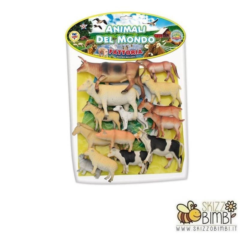 BUSTA GIGANTE ANIMALI DEL MONDO FATTORIA 14 PEZZI