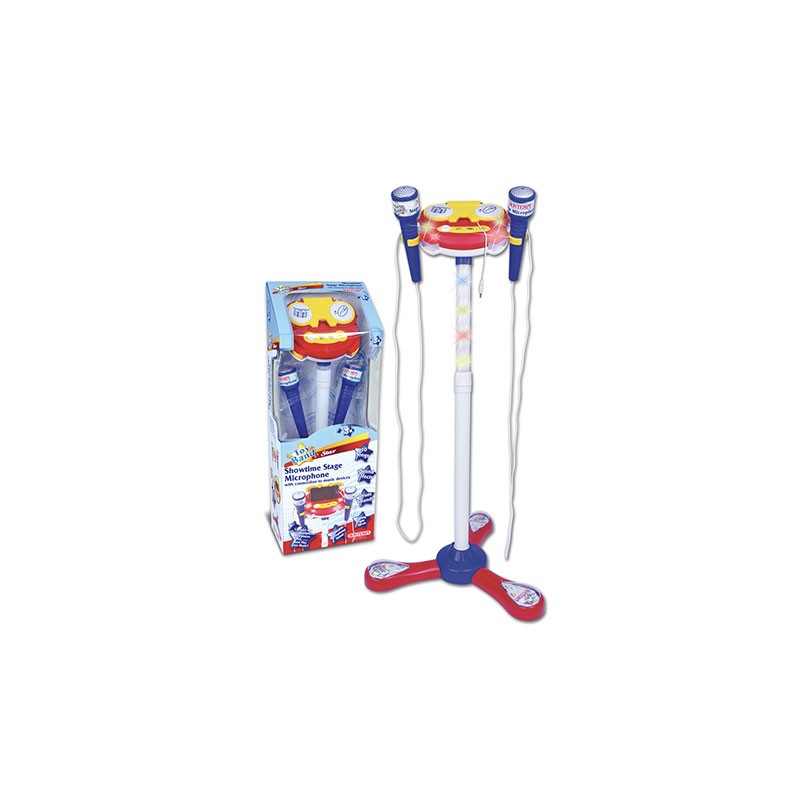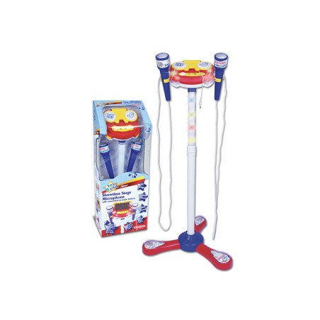 microfono da palcoscenico con 2 microfoni asta regolabile in altezza 10 brani preregistrati asta luminosa effetti luminosi e applausi connessione ad un lettore di mp3 smartphone ipod cd player
