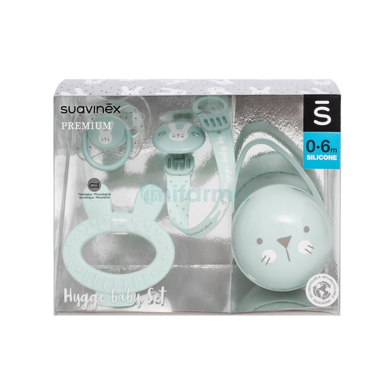 Il set regalo Hygge è composto da ciuccio con tettarella fisiologica in silicone 0 6 mesi clip capezzolo con nastro ciuccio confezione massaggiagengive coniglietto La tettarella fisiologica essendo più stretta e piatta alla base permette alla tettarella di stare bene nella bocca del bambino esercitando il minimo pressione al palato Ciucci approvati dalla Società Spagnola di Odontoiatria Pediatrica SEOP e raccomandati dall Associazione dei Professionisti Ortodontici Italiani ASIO