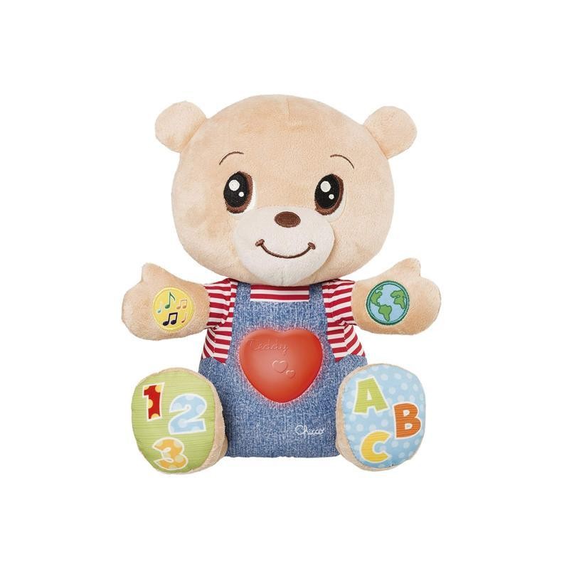 Teddy è un simpatico peluche educativo bilingue che aiuta a sviluppare le capacità cognitive insegna le prime lettere e i numeri grazie al suo cuore che cambia colore Grazie a Teddy il bambino impa