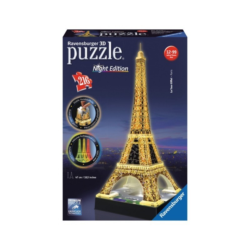 ravensburger 3d puzzle building night edition con luce led che cambia colore 216 pezzi si assembla senza l uso di colla interamente fabbricato in europa