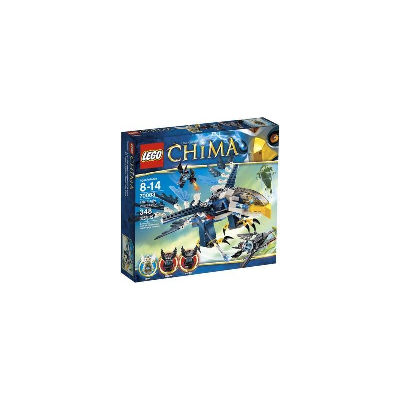 La tribù delle Aquile è in subbuglio Razar e Rizzo si sono impossessati del CHI della tribù delle Aquile e sono in fuga sul Corvo volante Fai volare l intercettatore di Eris e mettiti all inseguimento dei banditi Aziona il suo becco le ali le gambe gli artigli e la coda mobili per lanciare un contrattacco aereo Posizionati in modalità attacco e lancia i missili per abbattere il Corvo o cattura e rinchiudi i banditi nella prigione dell intercettatore Utilizza la funzione eiettabile per volar via e affrontare avventure Include 3 minifigure e armi assortite