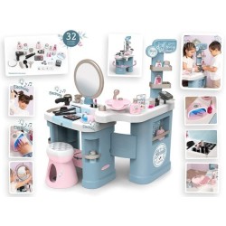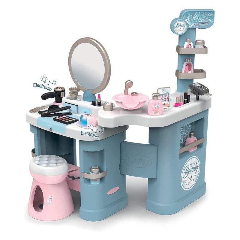 E composto da tre aree gioco specchiera con sgabello regolabile area shampoo e cassa con lettore per le carte di cr