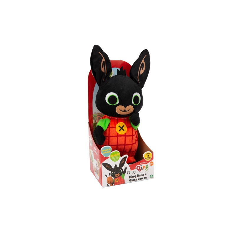 Tratto direttamente dall episodio della serie tv in cui Bing e i suoi amici si scatenano a ritmo di musica Divertentissimo peluche musicale in cui basta premere la manina per attivare la funzione Mentre balla Bing muove il corpo e anche le orecchie 4 musiche diverse incluse La musica si interrompe casualmente mentre viene suonata per replicare il gioco delle statuine musicali visto negli episodi del cartone animato tutti fermi chi si muove ha perso Funziona con 3 batterie AAA incluse