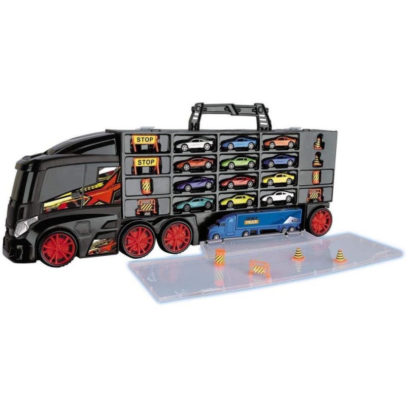 Grande bisarca con maniglia per portare le macchinine sempre con sé Include 12 macchine diecast 1 camion e 8 cartelli segnaletici