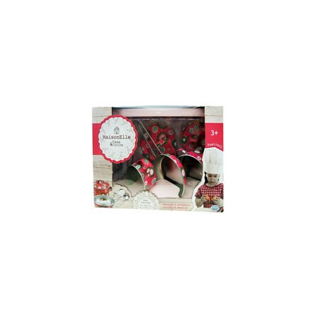 Pentoline e accessori da cucina La confezione contiene 2 pentole 2 coperchi 1 padella 3 utensili Materiale metallo smaltato Colore fantasia floreale fucsia verde e bianco Ideale per piccole cuoche