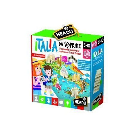 Età 5 10 Un grande puzzle per conoscere il mio paese Un grande puzzle per una fantastica avventura tra le bellezze dell Italia Puoi collocare anche i 25 monumenti più significativi nella loro giusta posizione geografica Prime conoscenze geografiche Conoscere le regioni e le città Scoprire le bellezze e i monumenti Riconoscere la flora e la faun Confrontare popoli e culture Puzzle 60 x 43 cm da 108 pezzi 25 elementi 3D Made in Italy