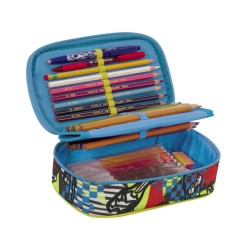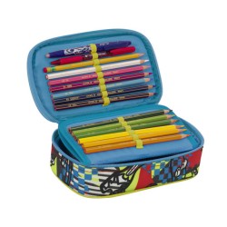 Dimensioni 22 x 12 5 x 6 5 cm CONTENUTO 1 penna a sfera cancellabile 1 penna a sfera rossa 1 matita 1 gomma 1 temperino 1 righello 1 goniometro 1 forbice 1 colla 18 pastelli 18 pennarelli Tessuto Tessuto polyestere