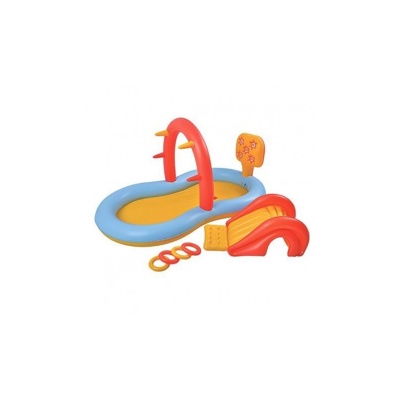 Piscina multigioco con spruzzi ideale per un estate unica Il set include oltre alla piscina anche uno scivolo un tabello palline e anelli colorati Piscina dotata di predisposizione per agganciare il tubo dell acqua