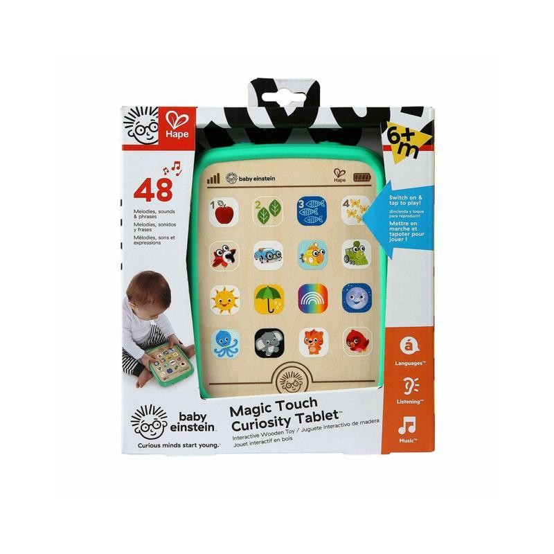 Con il Magic Touch Curiosity Tablet i vostri bambini potranno conoscere un mondo di scoperte sin dal loro primissimo dispositivo Basterà toccare un su questo magico giocattolo in legno per dare il via al divertimento Dai colori e i numeri alle prime parole in tre lingue diverse questo giocattolo tablet incoraggia lo sviluppo della motricità fine con la pressione di ciascun riquadro Gli amici di Baby Einstein faranno conoscere ai vostri bambini più di 150 melodie e suoni contribuendo a stimolarne i sensi La struttura robusta di questo giocattolo in legno implica che non dovrete preoccuparvi di schermi rotti o piani di protezione Il vostro bambino amerà scoprire cose sempre nuove ad ogni tocco di questo giocattolo musicale unico