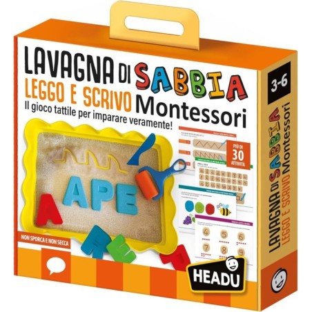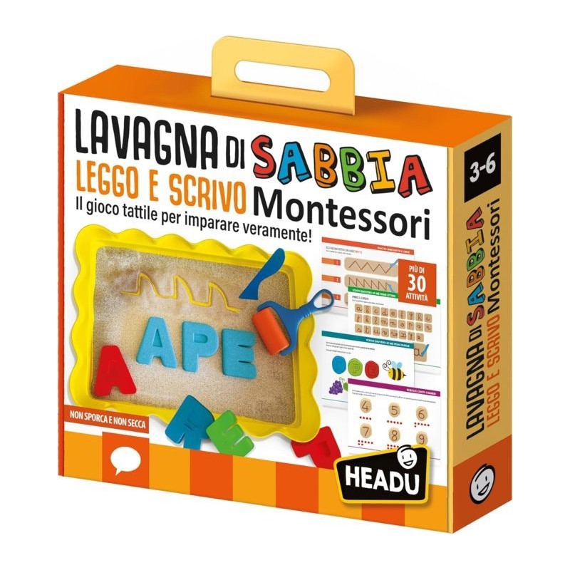Età 3 6 Il gioco tattile per imparare veramente La lavagna di sabbia Montessori guida i più piccoli alla prescrittura e alla scrittura di lettere parole e numeri Ci sono materiali di sabbia di vario colore che non sporcano e non seccano gli stampini dell ABC e un quaderno con gli esercizi Leggere l alfabeto e le parole Imparare a scrivere Avere sensibilità tattile Sviluppare la manualità fine Riconoscere i numeri 1 base di plastica 700 grammi di sabbia in vari colori 1 roll 26 formine ABC 1 spatolina 1 manuale didattico Made in Italy