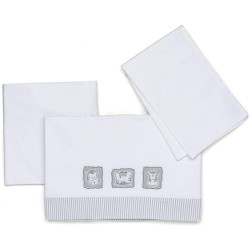 Completo lenzuola per lettino coordinato alla cameretta Babyzoo Diversi ricami e applicazioni per ogni collezione Composto da lenzuolo ricamato lenzuolino inferiore ad angoli e federa Tipo materiale cotone 100