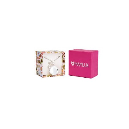 Ogni scatolina contiene 1 ciondolo chiama angeli dal diametro di 20mm in rame con riporto galvanico in argento 1 ciondolo a forma di ciuccio con cristalli bianchi in rame con riporto galvanico in argento 1 elegante catenina in acciaio con pallini della lunghezza di 110 cm regolabile